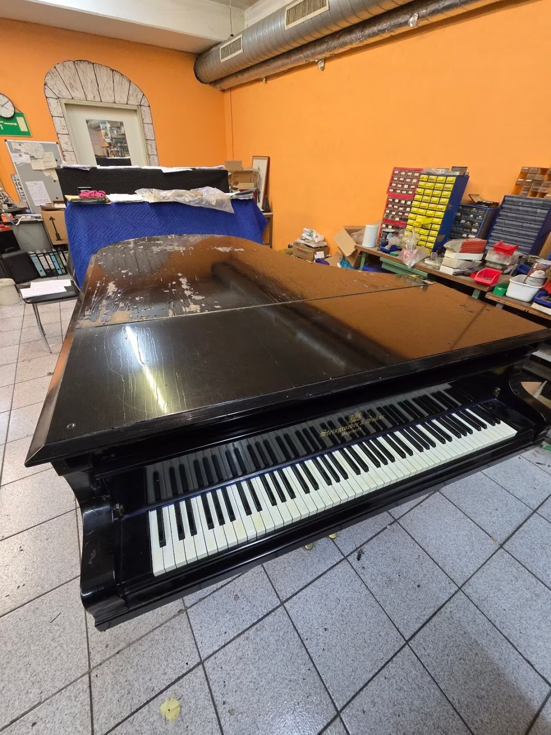 Ursprünglich Phonola Selbstspieler, Technik ausgebaut. Oberfläche orginal Schellack schwarz mit Gebrauchsspuren. Nach gründlicher Revision und Teillackierung. 3 Jahre Garantie in Deutschland! |